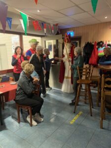 En op donderdagmiddag 27 november was de Sint uitgenodigd voor een bezoek aan de trouwe spelers van de donderdagmiddag. Ook de deelnemers van Old Stars tafeltennis, werden op vrijdagmorgen 28 november verrast met een bezoek van de Goed Heilig man en 2 pieten. Kortom het was een en al gezelligheid in het sportcafé van Return, waar ter geledenheid van Sint’s verjaardag de feestvlaggetjes al waren opgehangen.